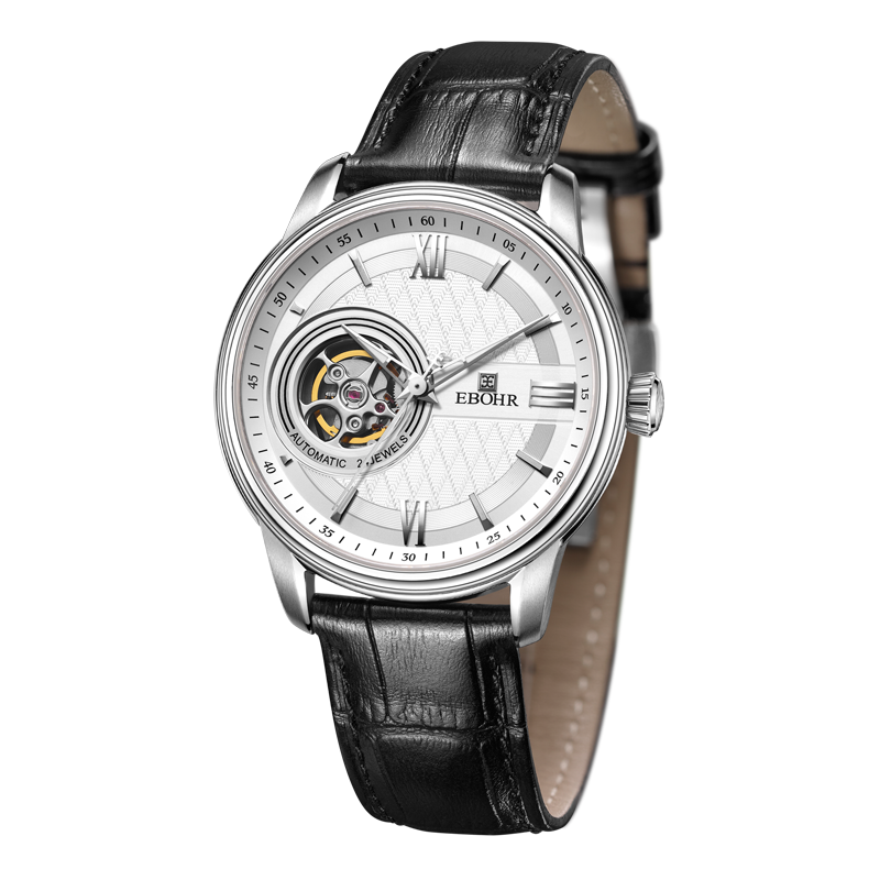银白色镂空表面+银色字钉;银色+白夜光表针